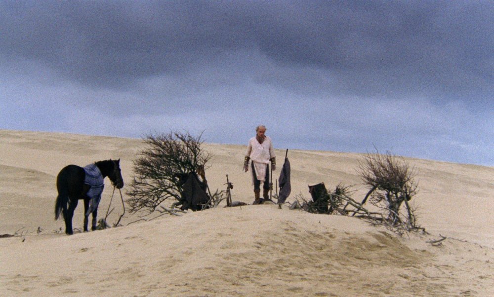 Een kruisvaarder doolt door de woestijn op zoek naar een finale rustplaats en mijmert terug over zijn zonden. Luc Monheim overschouwt de morele consequenties van godsdienstwaanzin in tableaus die afwisselend rauw en meditatief zijn. Deze verbluffend middeleeuws ogende calvarietocht werd volledig in Belgiƫ gedraaid!
